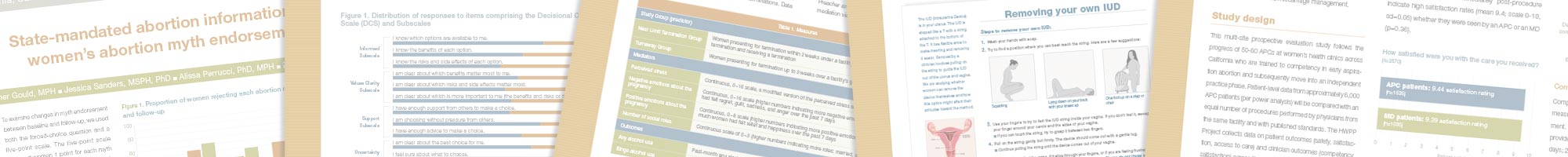 ANSIRH has published more than two dozen peer-reviewed publications on data from the Turnaway Study to date. Project Director Rana Barar recently summarized some of the study's main findings for a blog on ResearchGate. In addition, our annotated bibliography provides a complete list of publications. Issue briefs on numerous topics are forthcoming in 2016, and a new interactive website will allow visitors to explore women's stories, as well as the quantitative data, by the end of the year.